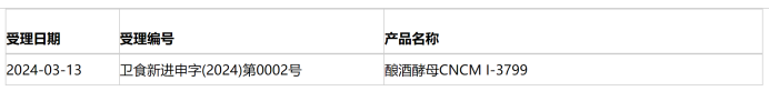 依据“国食药监注[2005]202号”的公告,酿酒酵母从2005年已经允许用于国内保健食品的开发利用。此处申报是酿酒酵母众多菌株中的一种。